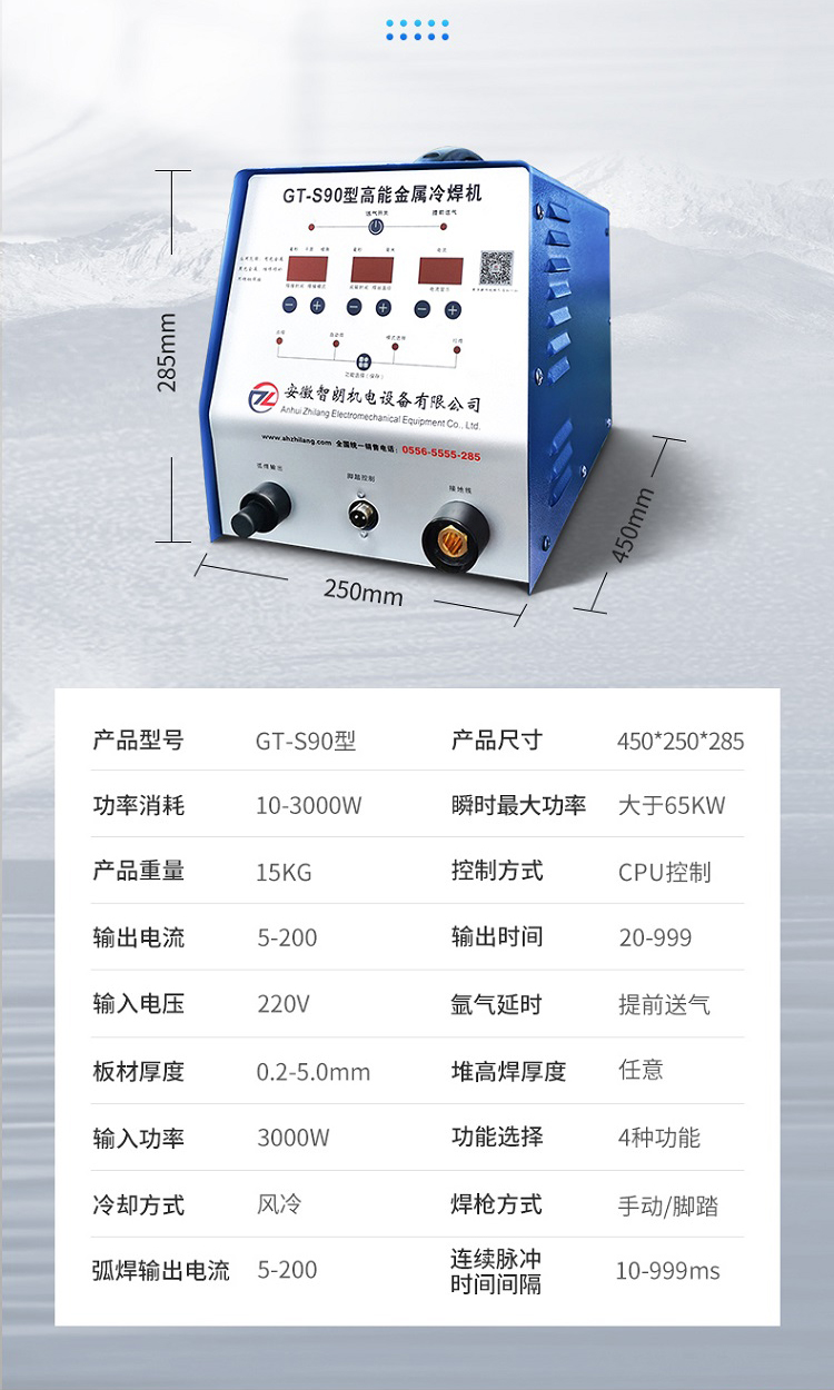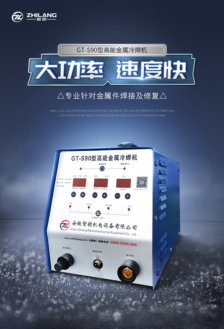 GT-S90高能金屬冷焊機是采用大功率逆變電源技術(AC-DC-AC-DC),把市電轉換成低電壓,大電流的直流電源,使其達到我們所需要的焊接電源條件,再通過微電腦技術,對焊接的時間進行精確的控制。該機是目前市場功率較大的機器,因功率比較大所以焊補速度是市場上傳統焊機的數倍以上,該機采用CPU控制,實現了脈沖電壓和時間的可調及儲存。從而可以根據工件焊后的缺陷特點調節到高效焊接和焊補功率,使焊機的焊接和焊補精度可以達到甚至超過激光焊機的焊接和焊補精度,同時又兼有氬焊的速度及靈活性。