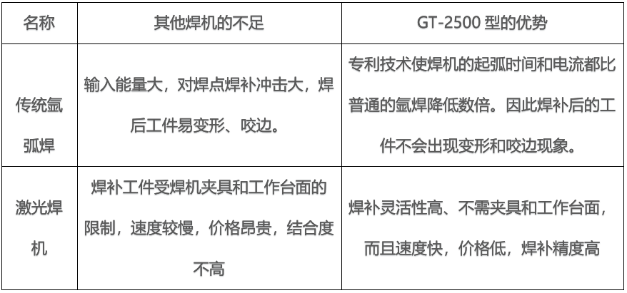 本設備可將儲存于電容器中的電能在瞬間通過脈沖電弧的形式釋放于鎢極與工件之間,溫度極高的電弧使金屬材料組成的工件和焊絲迅速熔化而熔接在一起,達到焊接焊補目的。高頻放電,瞬間放弧。優(yōu)點是:功率大、修補速度快、可廣泛應用于各種鋼鐵、銅、鋁及相關合金的焊接和修補,特別適用于較大量的修補。